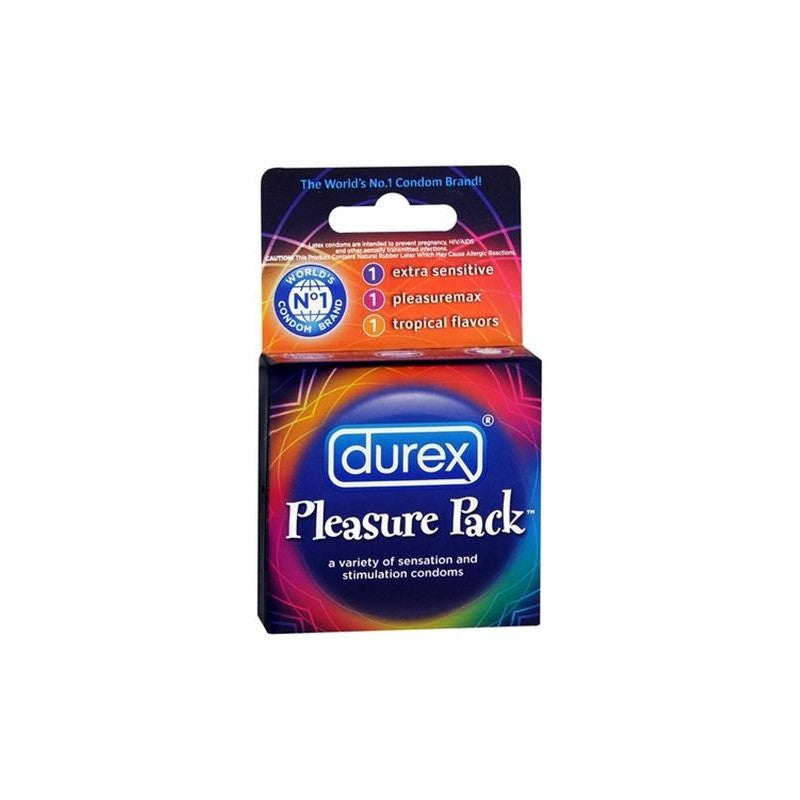 Durex Pleasure Pack assorted condoms put some adventure in your love life. The assortment contains Performax, with climax control lubricant, Intense Sensation which is studded, and Tropical Flavors. All are...- Tags: condoms