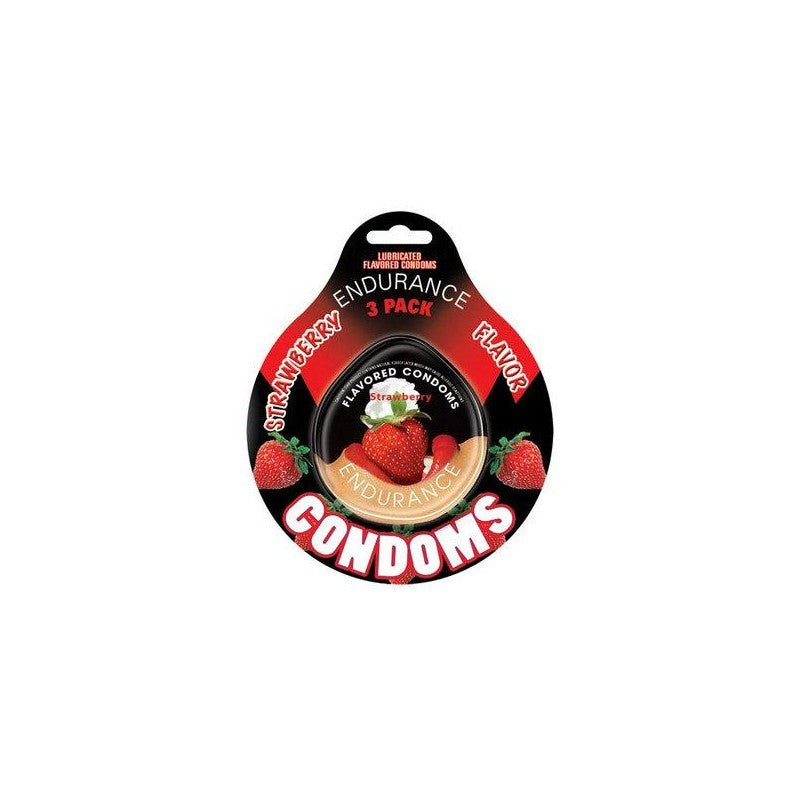 Endurance Strawberry Flavored Condoms - 3 Pack
