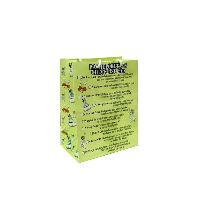 The Bachelorette's Checklist Gift Bag has a fun scavenger hunt game on the bag. The bag can hold a gift, or can be use to hold party favors for the...Product Details: