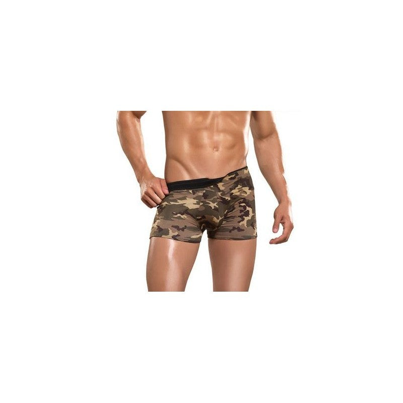 Camouflage panel short features comfort fit pouch and fold over peek-a-boo plush elastic waistband.Product Details: Realistic: No Size/Circumference: 0.000 How To Clean Item: Hand wash separately, cold water, line dry....Product Details: