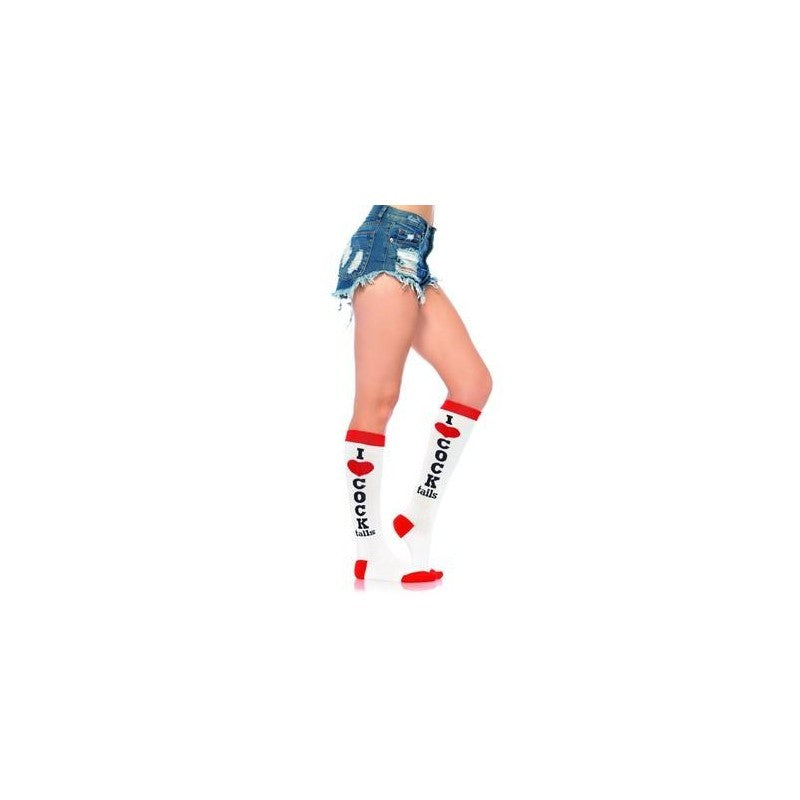 Knee high socks that read " I (heart) Cocktails." Red, black, and white. One size fits most 90-160 lbs. Hanger packaging.Product Details: Realistic: No Size/Circumference: 0.000 How To Clean Item:...Product Details: