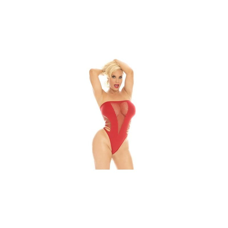 Red mesh and net strapless bodysuit with thong back. One size fits most. Boxed item.Product Details: Realistic: No Size/Circumference: 0.000 How To Clean Item: Hand wash cold. Do not bleach....Product Details:
