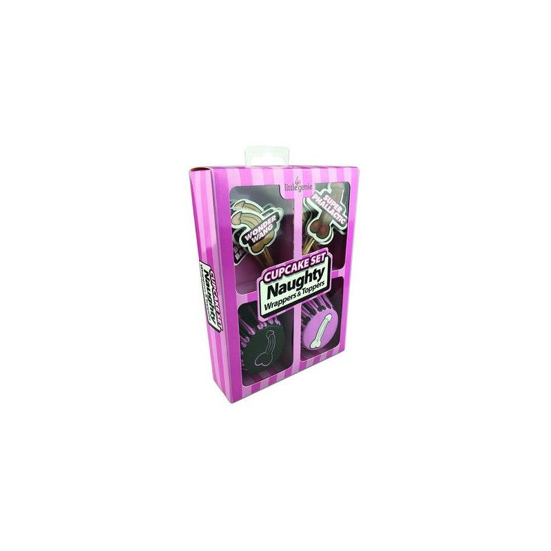 These fun cupcake sets are sure to get any party on the right track. Each set includes 24 cupcake wrappers and 24 toppers, 4 different designs.Cupcake wrappers contain image of...Cupcake wrappers contain image of a penis. Toppers all have penises that read " Afternoon Delight, " "Booty Banger, " "Wonder Wang, " and "Super Phallactic."