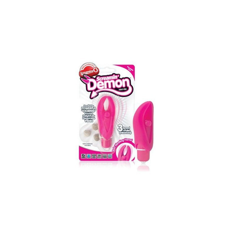 The Screamin' Demon mini vibe is a clever and compact mini vibe with flexible"horns" that transfer vibration all the way to their tips for devilishly intensesensations. Its 3 speed motor features a bonus pulsation mode and makes it easyto unleash your inner nymph while exploring and discovering your favorite kindof intimate mischief. And for fans of direct clitoral stimulation, the Screamin'Demon boasts a firm pleasure bead right between its horns to transfer extremelystrong vibration right where you want it. The Screamin' Demon is the perfect clitoral vibe for women who like lots ofpower packed into a compact shape. Tickle and tease the nipples and othersensitive zones for the flirty foreplay or use it to help orgasms come fasterand easier solo or with a partner. It's a portable and affordable sex toy forwomen of all experience levels and can even be used under water to turnan ordinary shower or bath into a wickedly satisfying expereince!