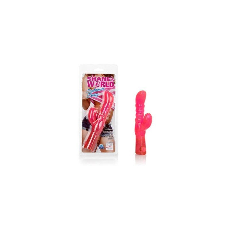 The Shane's World Sophomore Swag is the plushy, soft, rippled massager with a flexible shaft and clit teaser. The dual motors provide 3 speeds of powerful vibrations. Features an easy...Product Details: